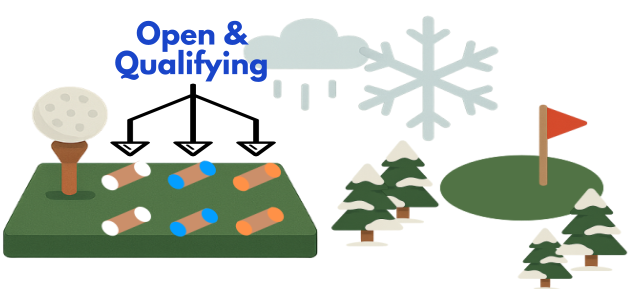 2. TEEBOXEN OPEN & QUALIFYING in de WINTER: ORANJE, BLAUW & WIT (= rood & geel GESLOTEN)