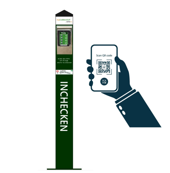 Inchecken op de speeldag op de golfbaan via het Golfdashboard dien je voorafgaand aan je starttijd te doen door je QR code te scannen bij de QR-scanner aan de INCHECKPAAL tegenover de entree van het clubhuis.