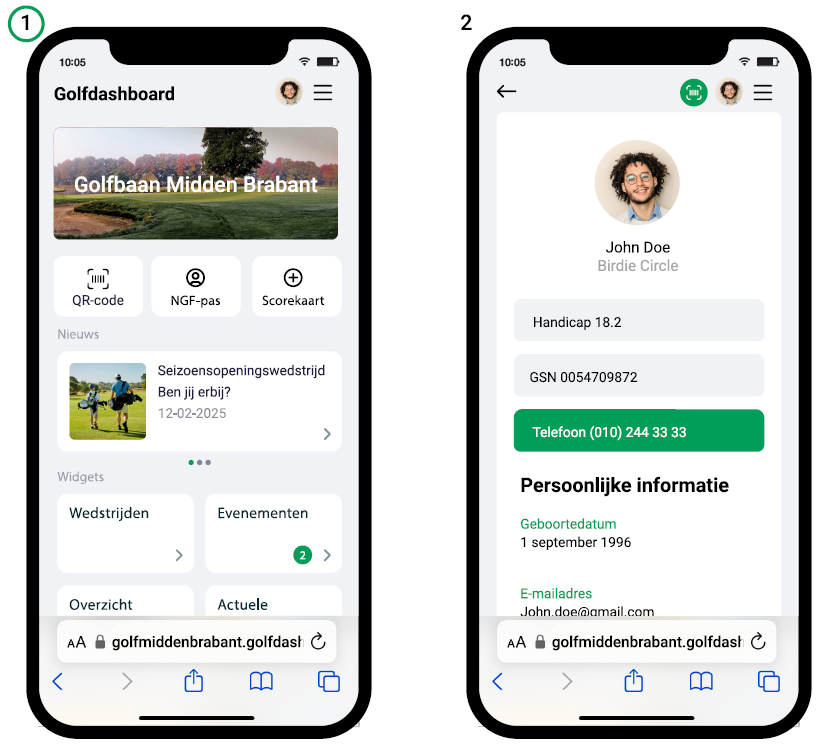- Gebruik van QR-code / Inchecken op de golfbaan