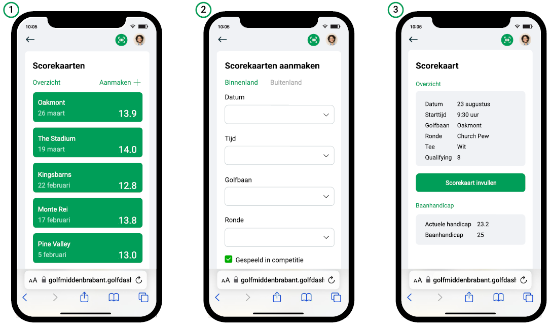 Scorekaart aanmaken, invullen en inzien