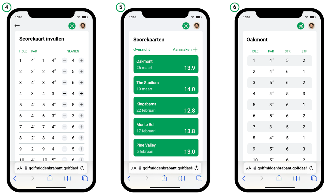 - Met de app voert u tijdens of na de wedstrijd eenvoudig uw scorekaart in.