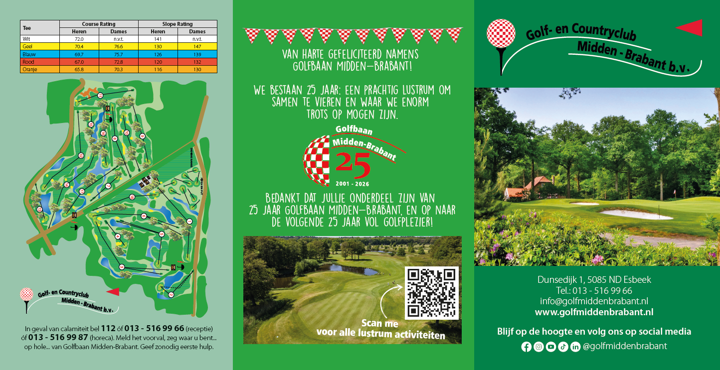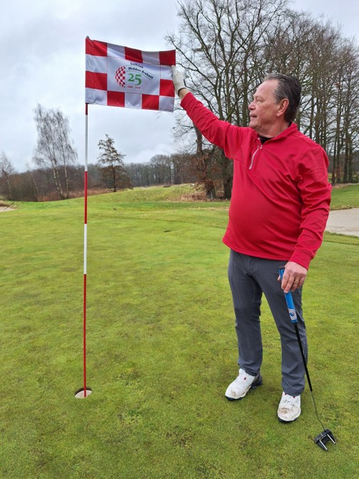 - Op alle 18 holes van onze baan zijn de gebruikelijke vlaggen vervangen door een speciale 25 jaar vlag;