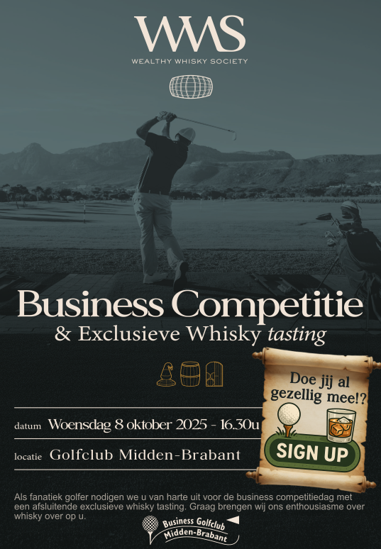Op deze businessdag doen we het anders dan anders! Zoals van origine gewend wel 9 holes met een shotgunstart om 16:30 uur, MAAR nu nadien afsluitend een exclusieve Whisky Tasting!