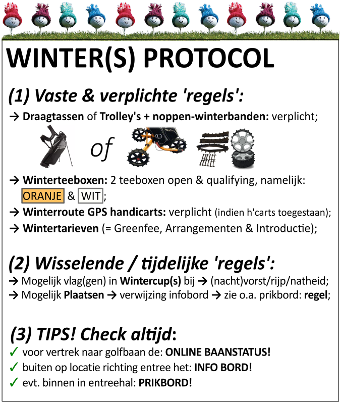 Vanaf medio november 2025 (t/m medio maart 2026) geldt weer het jaarlijks terugkerende onderstaande WINTER(S) PROTOCOL (+ gereduceerde wintertarieven voor gastspelers & introducees).