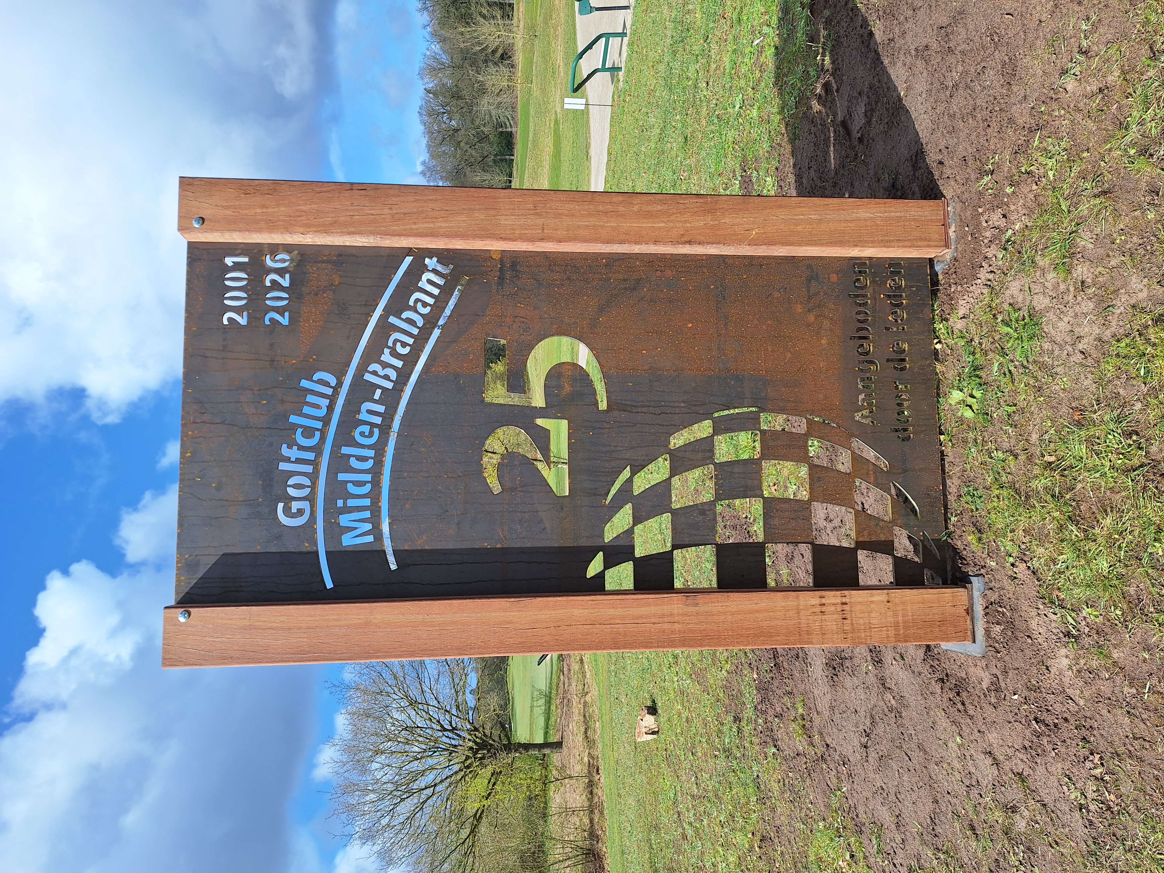- Op alle 18 holes van onze baan zijn de gebruikelijke vlaggen vervangen door een speciale 25 jaar vlag;